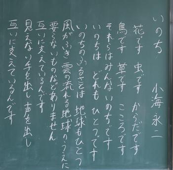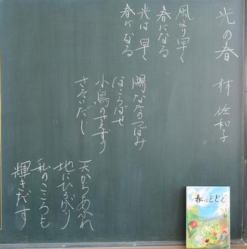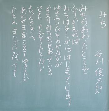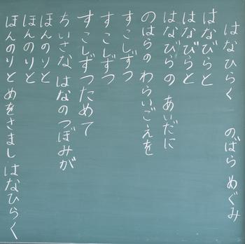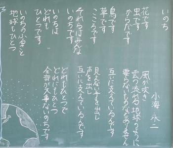 今年度も、教室の背面黒板には、担任の思いが込められた詩が書かれています。それぞれの教室から、それぞれのクラスにあった「教室のい・ぶ・き」が聞こえてきます。
