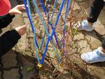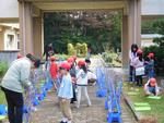 1年生は大切にアサガオを育ててきました。種を収穫し、今日は残ったつるを支柱から取り外しました。
