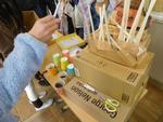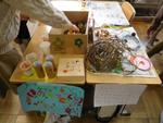 1年生がどんぐりや落ち葉、まつぼっくりなどを使ってお店屋さんをたくさん作りました。