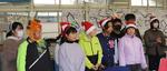 作ったジュースはサンタのかっこうをした6年生が学級を回り、全校児童に配りました。