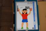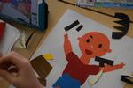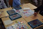 タブレットを使って下書きを作り、それを基に色紙を切って台紙にはりました。