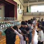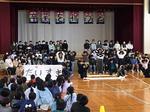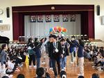 6年生の卒業を全校みんなでお祝いしました。この卒業を祝う会は、5年生が中心になって会場の飾りつけなどの準備を進め、今日の司会進行もすべて5年生が行いました。