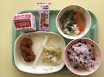 今日の給食は、卒業お祝い献立でした。赤飯、おすいもの、子供に人気のチキンやスティックケーキも出ました。