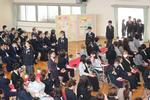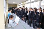 昨日からの雨でお別れ式は、校舎内で実施しました。1~4年生は、6年生への感謝の気持ちをメッセージや歌にこめて伝えました。