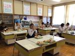 給食試食会には7名の保護者に参加していただきました。東海中学校からお招きした栄養教諭から、給食ができるまでの様子や栄養価のお話をしていただきました。児童と同じように手洗いをして配膳を体験後、給食を食べていただきました。
