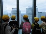 エレベーターで42階まであがると、子どもたちは「すごく高い!」「速い。」「隣のビルより高い。」