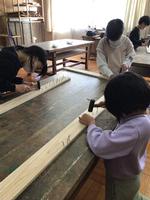 慎重にくぎを打っていくと、だんだん慣れてきて「大工さんになった気分」と楽しそうに打っている子もいました。