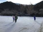 今朝、運動場に少しだけ雪が積もっていたので、1~4年生で雪遊びをしました。