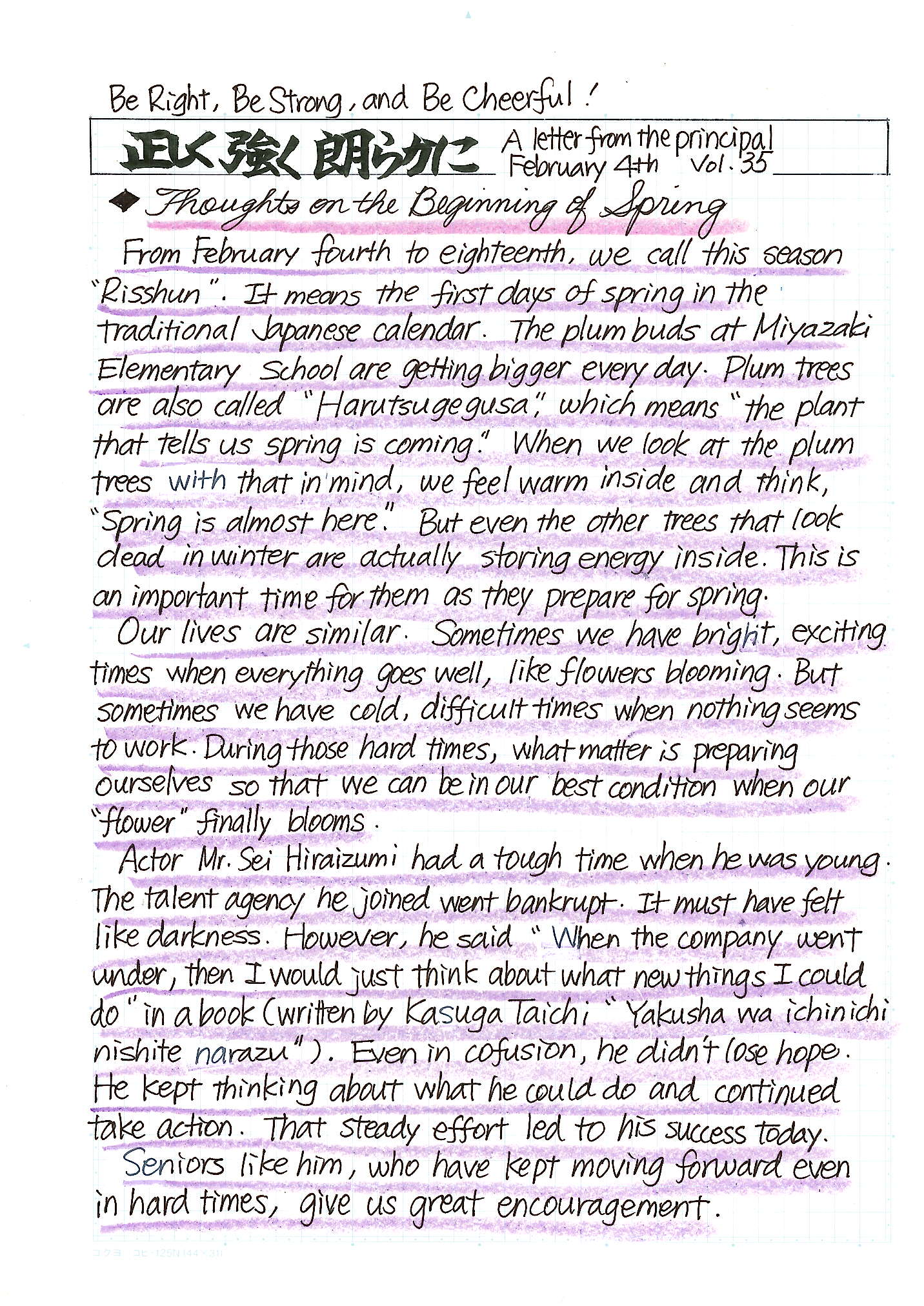 校長室だより1 English version
