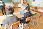 子どもたちは、野鳥のさえずりの音声ファイルをタブレットPCで再生して、どの野鳥のさえずりなのかを覚えていました。