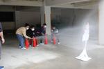 水消火器を使った消火訓練にも、どの子も真剣に取り組むことができました。