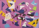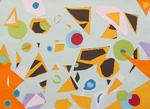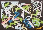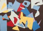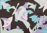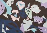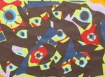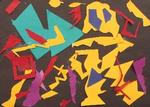黒の色画用紙をベースとして、色々な形や色を重ねていきました。