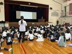 本日、スマイル集会が行われました。校長先生のお話では、みんなで「脳トレ」に挑戦しました。