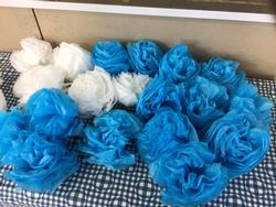 5年生では、卒業を祝う会に向けて手作りのお花を作っています。
