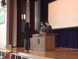 今年度最後の月曜集会が行われ、環境委員と学級委員の発表がありました。