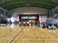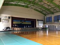 体育館をのぞくと、舞台に立つ6年生のきりりとした眼差しが見られ、体育館に響く声が聞こえました。