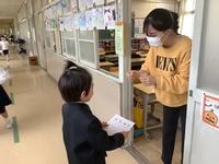 1年生が、たくさんの人に声をかけ、お菓子が書いてあるカードを集めました。
