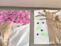 本年度、六名小学校は開校90年という節目の年を迎えます。開校90年記念プロジェクトでは、6年生が中心となり、六名っ子の思いを込めた桜の木を制作しています。児童は、六名小学校で過ごしていて楽しいと思うことについて、桜の花びらにメッセージを書いていました。
