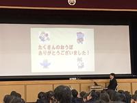 実行委員の人たちが紹介した「桜の花」には、部活でいいプレーができたときや掃除を頑張ったときなど、様々な場面で感じた楽しい気持ちが集まっていました。「キャラクター紹介」では、全校から募集した「むつにゃん」の新しいデザインや新しい友達の中から選ばれた作品がお披露目されました。