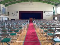 5時間目。5年生児童で体育館の椅子並べをしました。