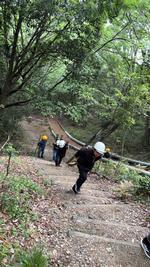 落ち葉スキーの様子です。けがもなく、楽しんでいるようです。