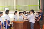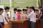 サッカー部と女子バスケットボール部が壇上に上がり、全校児童からあたたかい拍手を受けました。