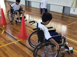 4年生が総合的な学習の時間に、福祉実践教室で「車いす体験」を行いました。2人1組となってマットを使った段差上げや、スラロームの自走を体験しました。車いすを押すときは、「命を預かっている」という気持ちで、真剣に取り組むことができました。児童にとって、とても貴重な体験をすることができました。