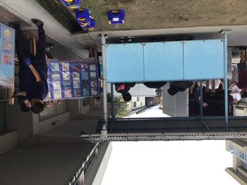 下校後に10月18.19日に行われるおかざきっ子展の作品を先生達が協力してトラックに積み込みました。