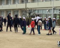 長縄では、交互に並んだ5年生が3年生のペアに優しく「今だよ。」と入るタイミングを教える姿が見られ、楽しく交流することができました。