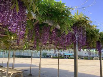 校内の藤棚に、今年もきれいな藤の花が咲きました。