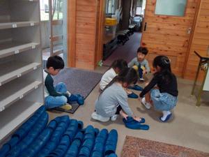 1・2年生も、スリッパを整頓します。なかなかの数でしたが、とっても丁寧に整頓してくれました。
