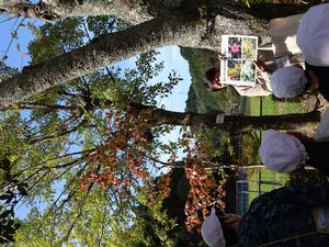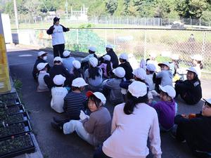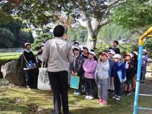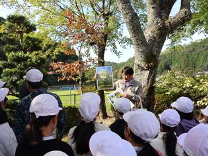 樹木医の方を学校に招いて、校庭に植えられている木を実際に見ながらお話を聞きます。