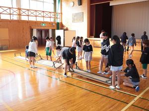 25日の学芸会に向けて、今日体育館の準備をしました。