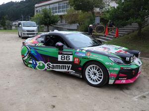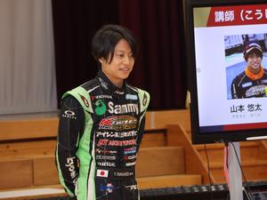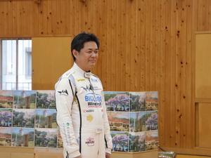 まず、体育館でラリードライバーで岡崎市出身の山本 悠太選手と、コ(副)ドライバーの安藤 裕一選手が、