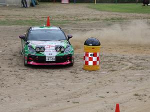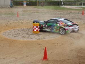 その後、運動場でラリーカーのデモンストレーション走行を見学しました。