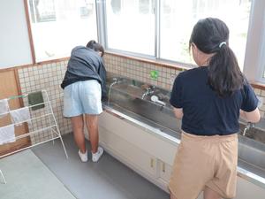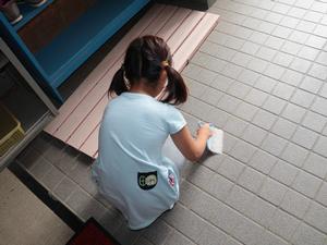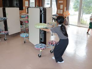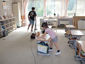 夏っ子はいつものように給食の後、清掃活動に取り組みます。