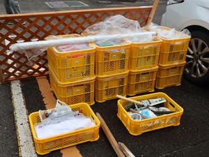 夏っ子が図工の時間等に制作した作品や、展示のために必要な資材を中央総合公園に運びました。