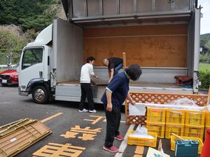 この作品展に向け、今朝、社会教育委員長の市川様がトラックを出してくださり 、