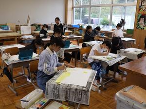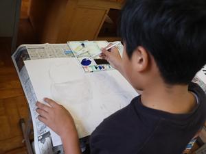 まずは、5・6年生。「100万回生きたねこ」で読書感想画を描いています。