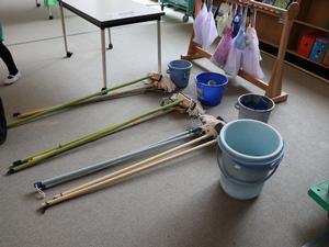 5年生と協力して、ランチルーム・図工室、理科室のワックスがけをしてくれました。