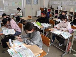 5・6年生の音楽の授業。卒業式で歌う曲の練習が始まりました。