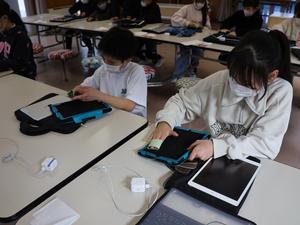 普段授業で使用している、自分のタブレット端末のセルフメンテナンス(掃除)をしました。