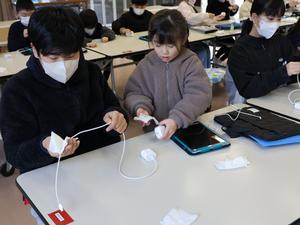 5・6年生が理科の授業の発展で、電磁石を使ったおもちゃ作りをしました。