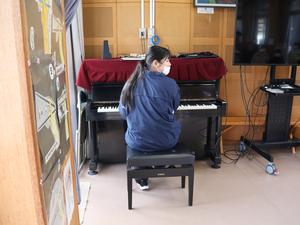 校舎の中では、鼓笛の自主練習をしている子たちがいました。
