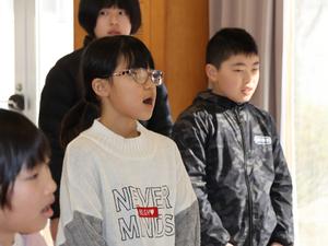3・4年生は音楽の授業です。卒業式で歌う予定の「赤い屋根の家」を練習します。