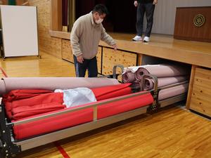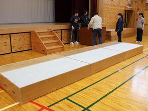 おまけ② 夏っ子が帰った後、先生たちで卒業式に向けた体育館準備をしました。