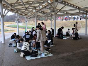 お昼は屋根のある場所で、みんなでお弁当を食べました。