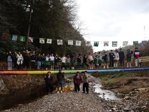 セレモニーの最初に、最後のパーツを橋にはめ込みます。