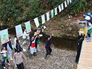 最後に橋の上から「菓子まき」を行いました。