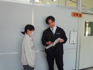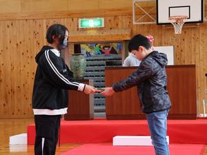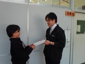 最初に6年生に、卒業おめでとうメッセージを渡します。